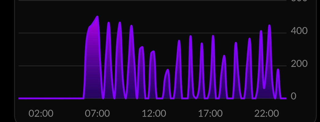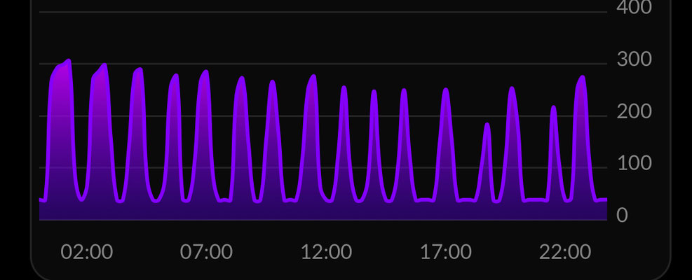 hieronder een voorbeeld van een warmtepomp waar de installatie in balans is, en daardoor een beter patroon laat zien