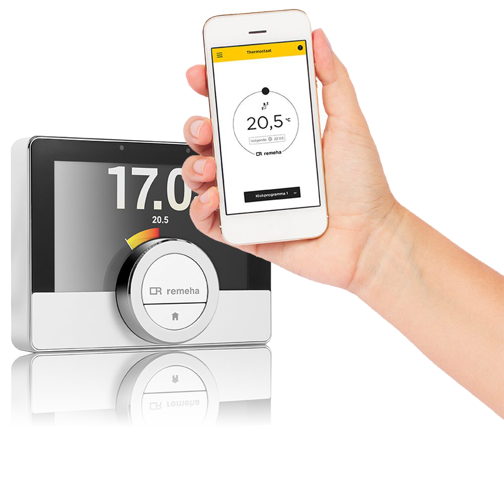 Het binnendeel van de warmtepomp wordt vaak gecombineerd met de Remeha eTwist thermostaat, die speciaal is ontworpen voor het Remeha Ace-platform. Deze thermostaat communiceert vlekkeloos met het warmtepompsysteem en is eenvoudig in te stellen via een handige app. Dit biedt u volledige controle over de verwarming van uw huis, zelfs op afstand.